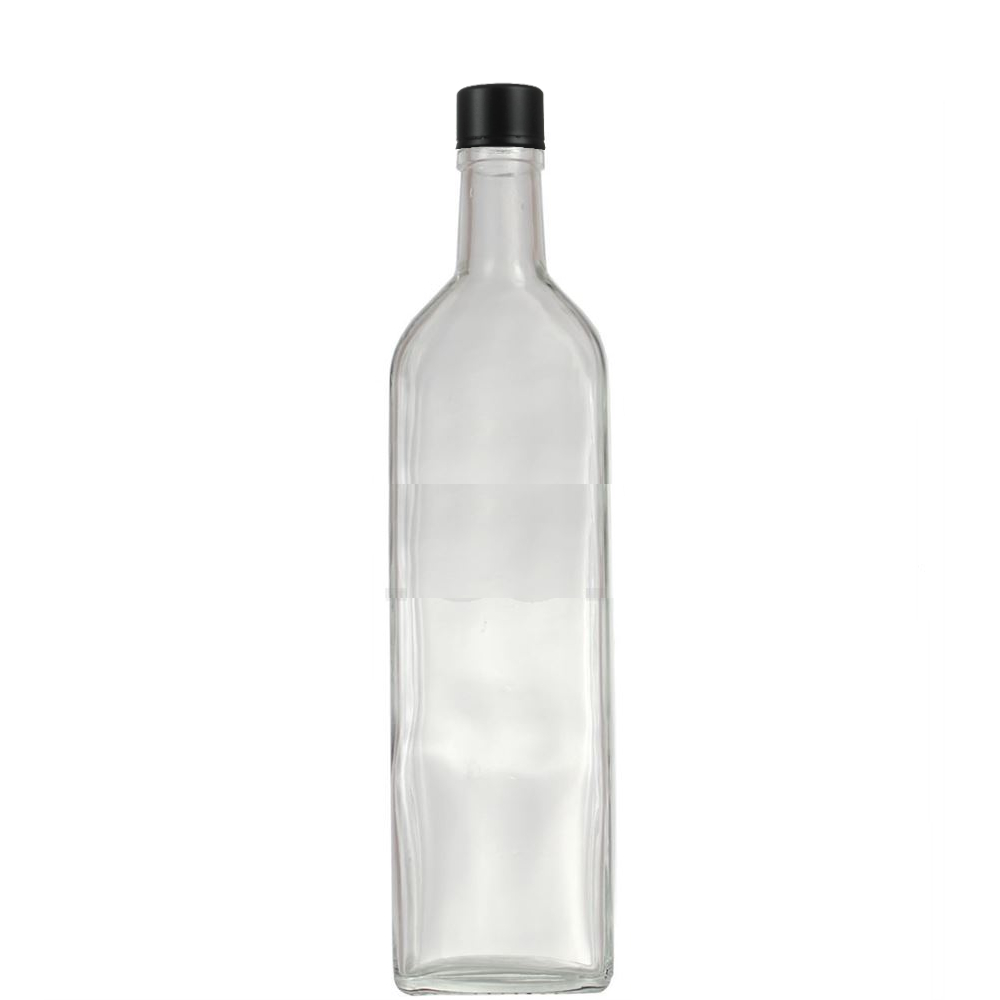 Bezfarebná veľkoobjemová fľaša na alkohol a destiláty s čiernym kovovým uzáverom. Vhodná na gravírovanie vzhľadom na rovnú plochu. Litrový objem vhodný na dlhodobé skladovanie Vašej pálenky.