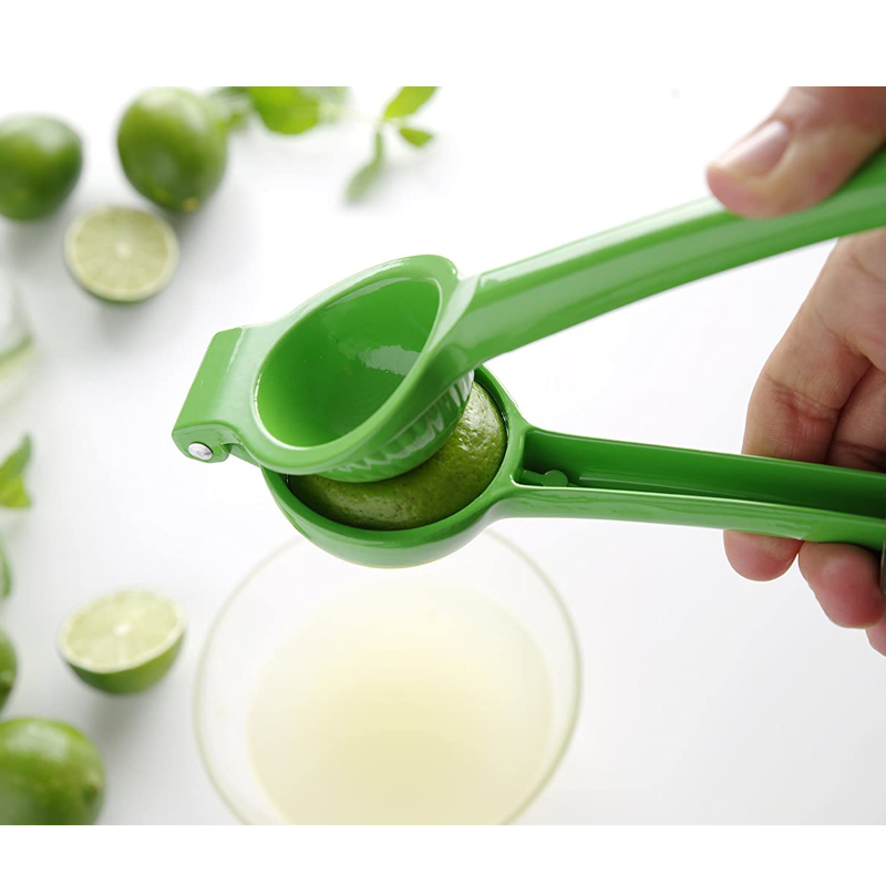 Manuálny kovový odšťavovač na polovičky limetiek. Zelené prevedenie priamo pre limetky. Nie je vhodné do umývačky riadu, nutné umývanie pod tečúcou vodou.