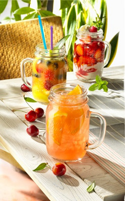 Imidžový hrubostenný pohár v hranatom tvare s uchom. Veľmi obľúbený pohár na servírovanie limonáddžúsov, štiav a fresh drinkov. Dodávaný aj s viečkom. Ozdobený nápisom Quattro Stagioni. Vyrobený zo skla, ktoré je vysoko odolné proti mechanickému poškodeniu.